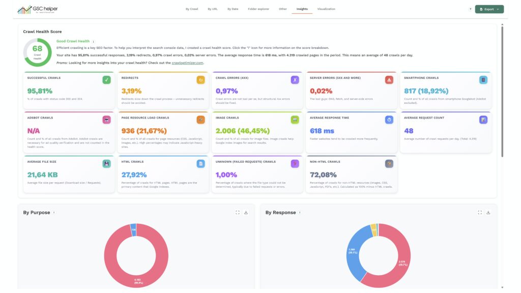 - New „Insights tab“ provides a high-level overview on the crawl health
