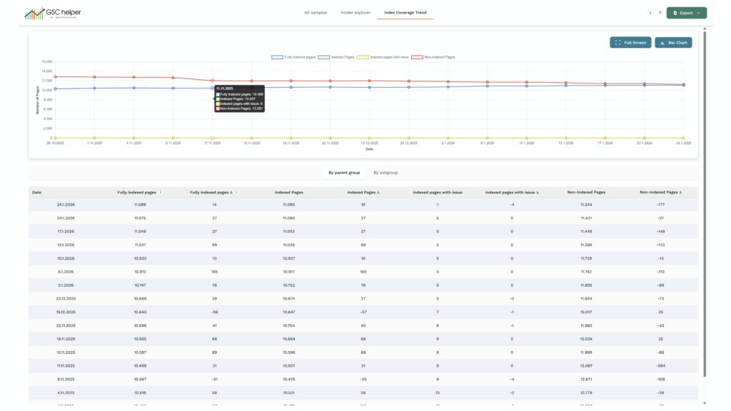 - Added „table extraction“ for the index coverage report. Now, you can save sample URLs directly to your clipboard, simplifying further actions.